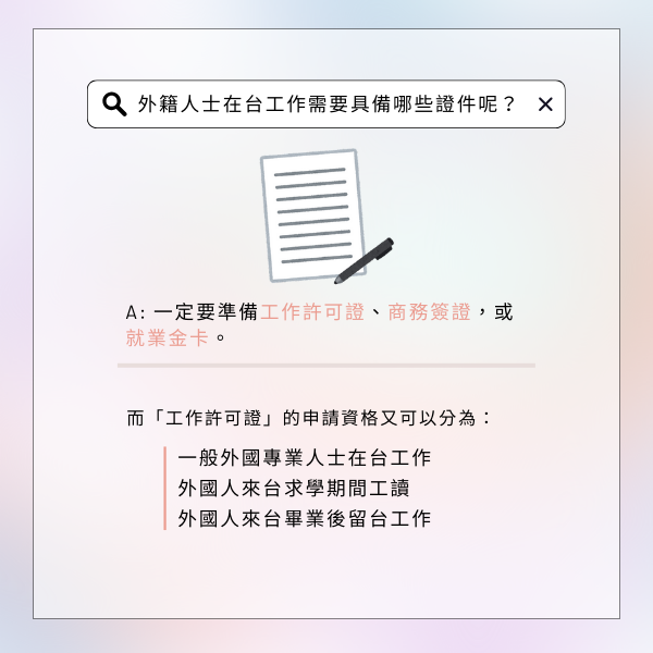 首先,外國人要來台工作需要先準備什麼呢?需要具備哪些證件呢?